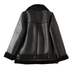 Damen Kunstleder Pilotenjacke mit Fellfutte