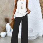 Erhalten Sie mit diesem unverzichtbaren Zweiteiler-Set den ganzen Tag über Stil und Komfort. Fügen Sie Ihrem Sommerlook eine Prise Eleganz und Frische hinzu und genießen Sie die Vielseitigkeit und Bequemlichkeit dieses Sets.