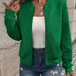Diese minimalistische Übergangsjacke für Damen vereint zeitlosen Look mit mühelosem design. Der entspannte Bomber-Schnitt mit durchgehendem Reißverschluss und gerippten Abschlüssen bietet einen lässigen Auftritt. Ideal für Alltag, Streetstyle oder als stilvoller Kontrast zu femininen Outfits.